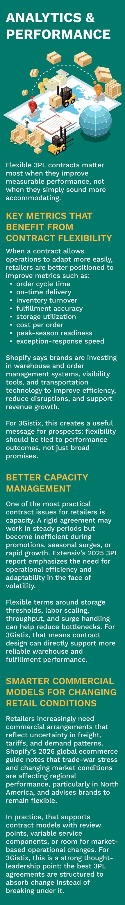 For 3Gistix, flexible 3PL contracts are a strong content theme because they speak directly to what retailers want now: operational agility, measurable performance, and logistics partnerships that can evolve with the market.