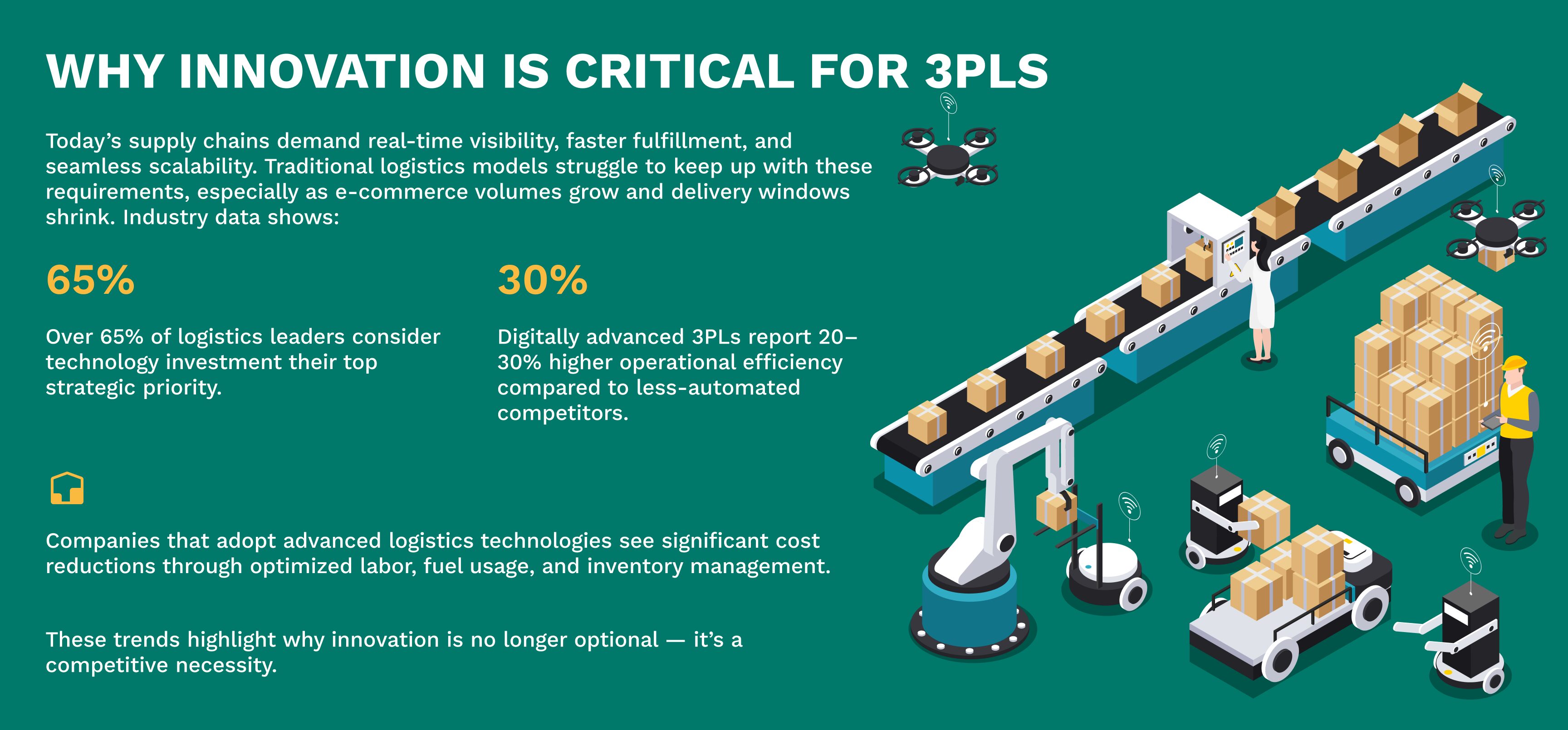 Emerging technologies allow 3PLs to scale operations quickly during peak demand without proportional cost increases.